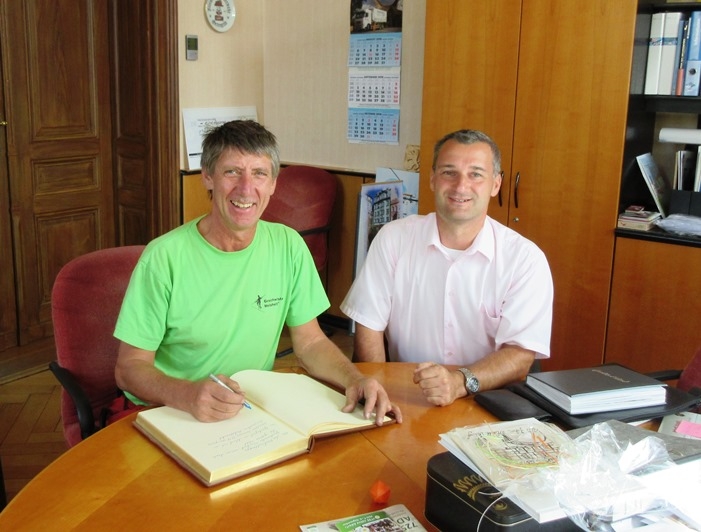 Peter Mario Weisheit, das Familienoberhaupt, trug sich auf Einladung von Bürgermeister Rico Schmidt ins Goldene Buch der Stadt ein und erwies Adorf damit eine besondere Referenz.