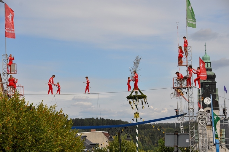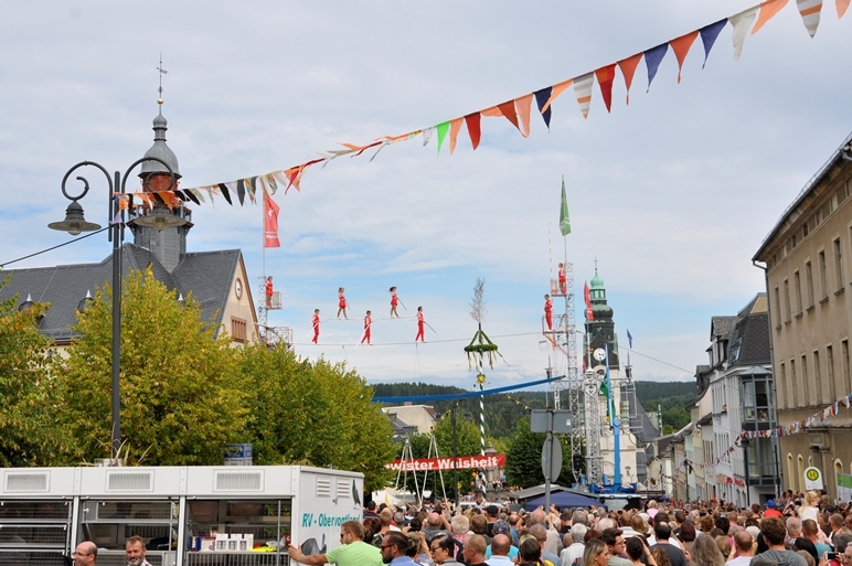 Nach 50 Jahren traten in Adorf zur 725-Jahrfeier die Geschwister Weisheit aus Gotha mit ihrer weltweit einmaligen Hochseilshow auf. Vor einer Wahnsinnskulisse auf dem Markt begeisterten sie tausende Menschen.